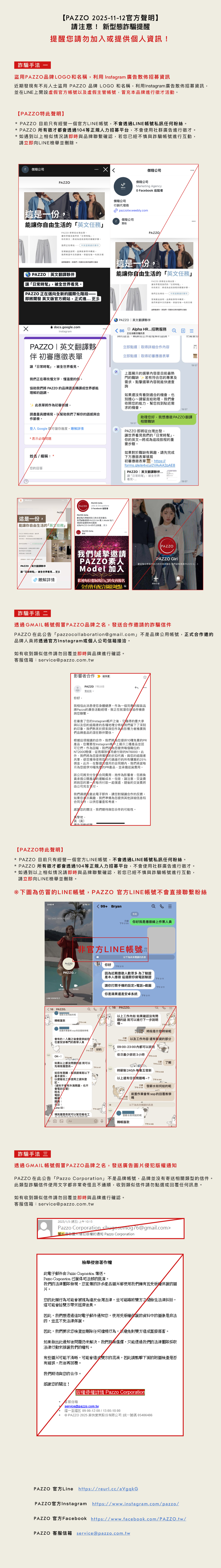 【 PAZZO 2025-11-12官方聲明 】 請注意! 新型態詐騙提醒