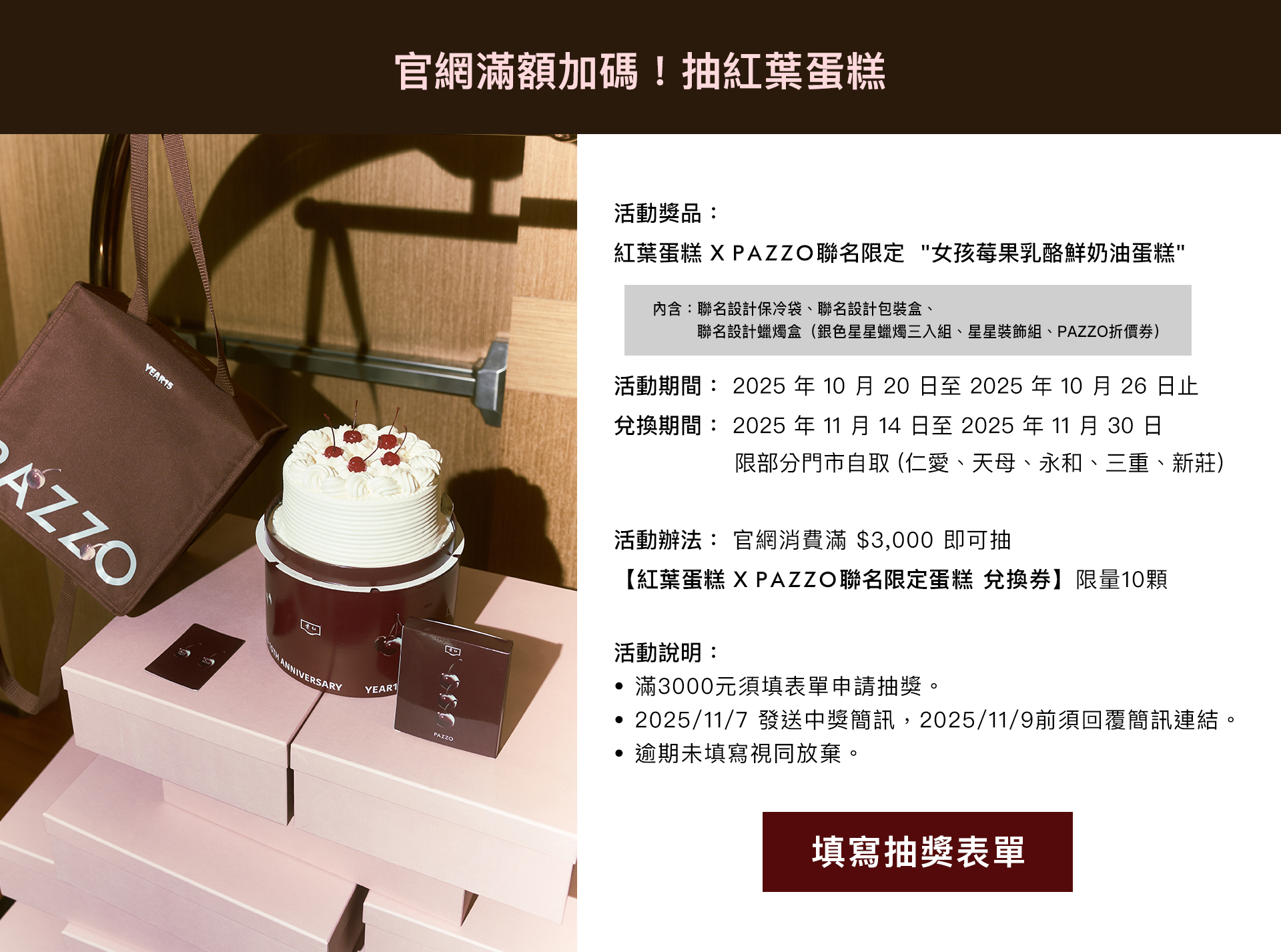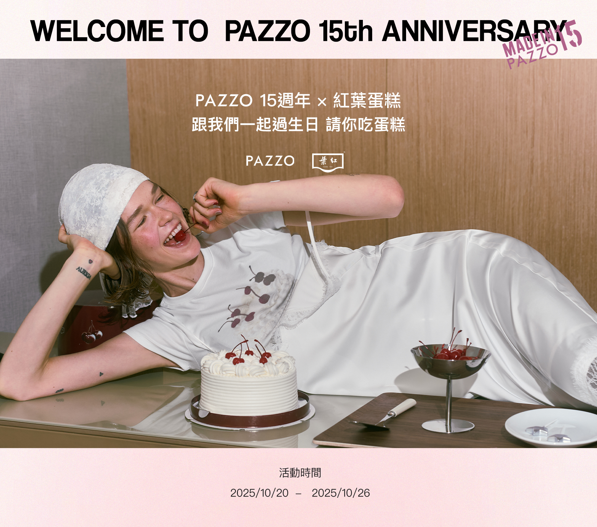 PAZZO 15週年 X 紅葉蛋糕 跟我們一起過生!請你吃蛋糕 !