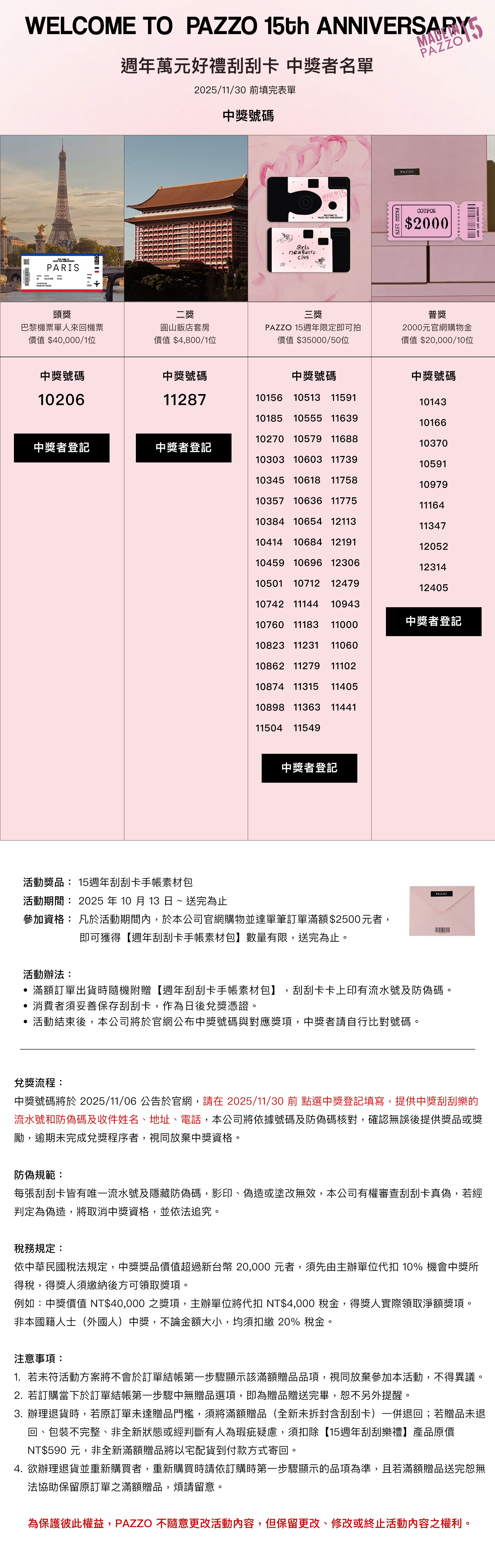PAZZO 14週年生日慶 LINE 好友抽獎活動